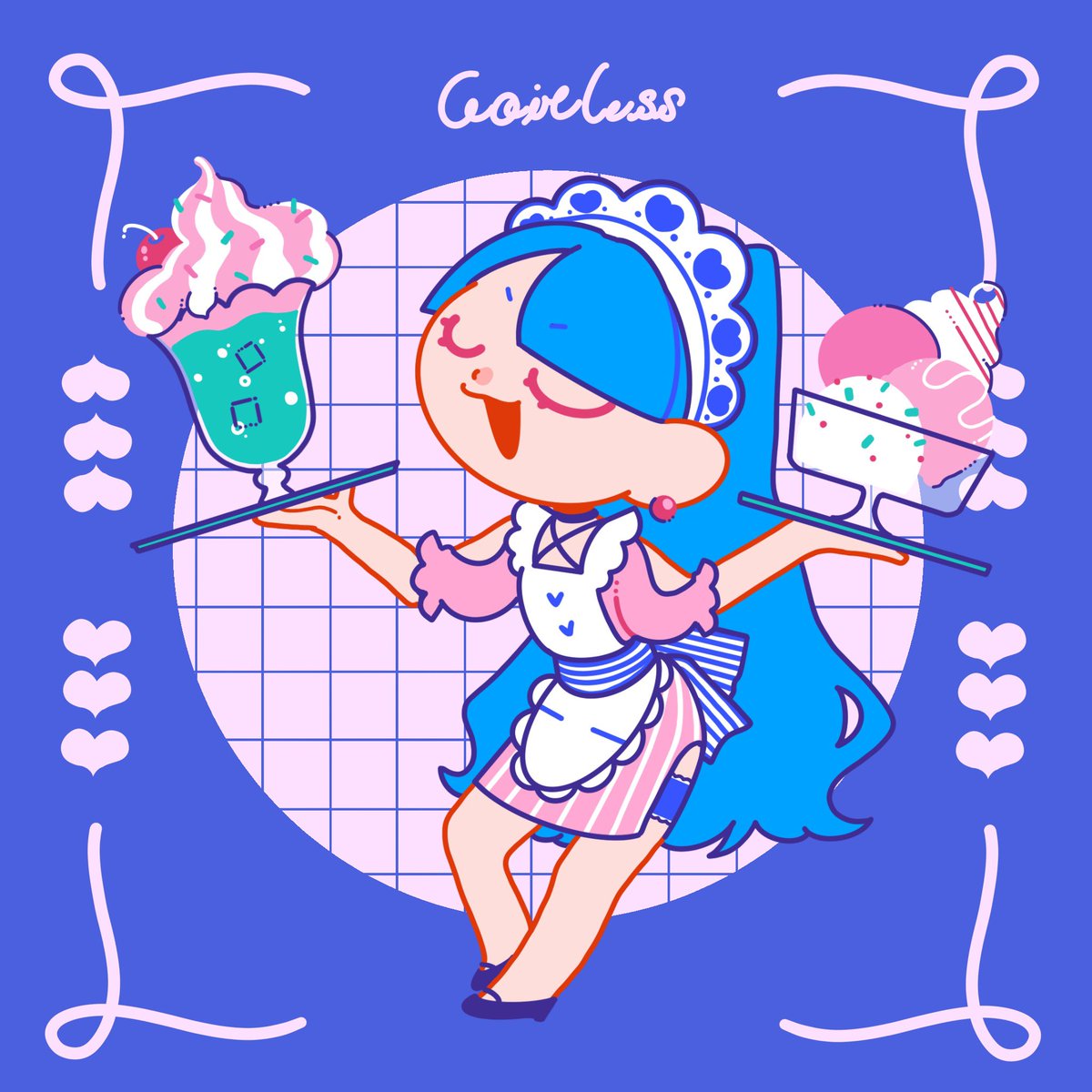 ウェイトレスちゃんとクリームソーダ🍒 #イラスト #illustration