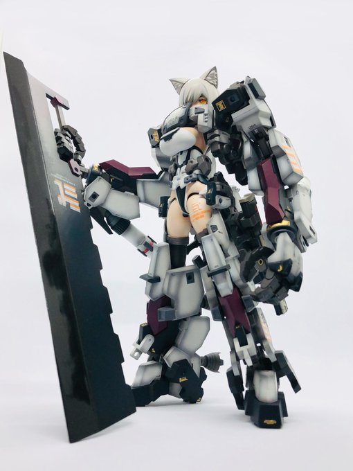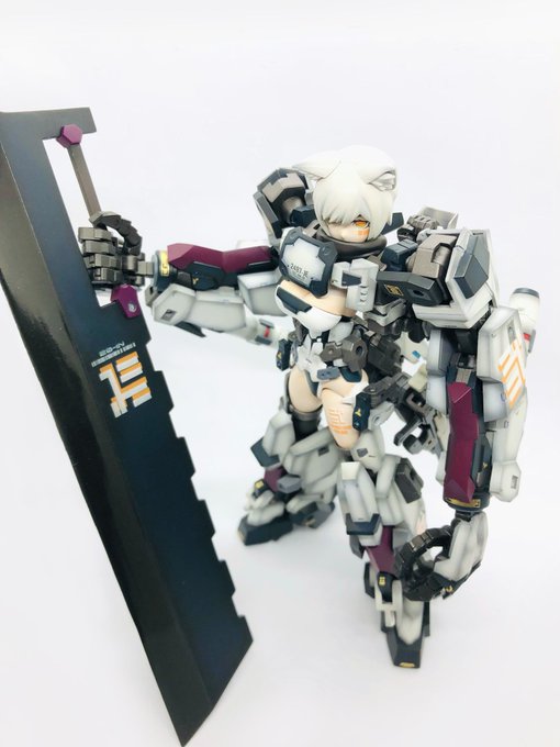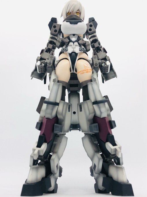 「ボクはねェ弐号、キミと殺り合うのが楽しくて仕方ないのさ…フフフ」 強化イノセンティア壱号の完成です! 前回制作した弐号の対になるように作りました〜 #フレームアームズガール #FAガール #イノセンティア