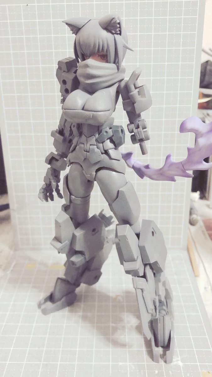 ウチのパワー担当「チャージャー」さん完成しました☆ 名前の通り突撃が得意な娘です(*^^*) ちなみにガール本体はフレズベースで制作してますが固定してるので全く可動しません(*´`) 可動するのは腕ぐらいでただの置物状態です笑 #FAガール #フレームアームズ・ガール #巨腕っていいよね