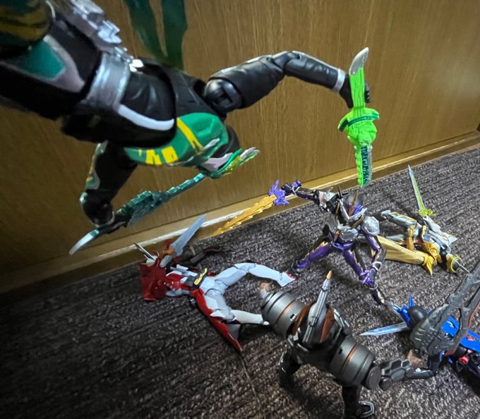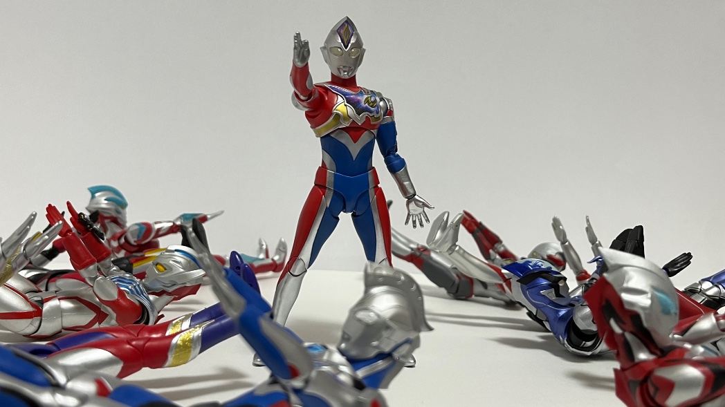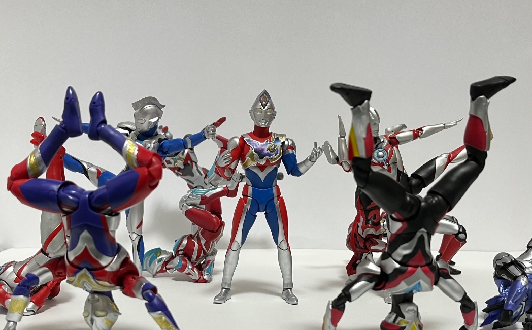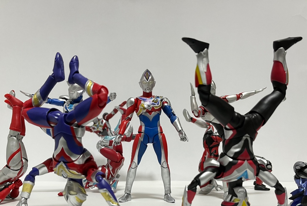 バックダンサーの数とニュージェネ主人公の数が同じな事に気付いたので思い付いたネタ ダンサーはヒゲ面の人だけトリガーで固定してます、理由はお察し #ウルトラマンデッカー #ウルトラアーツ #フィギュアーツ写真部