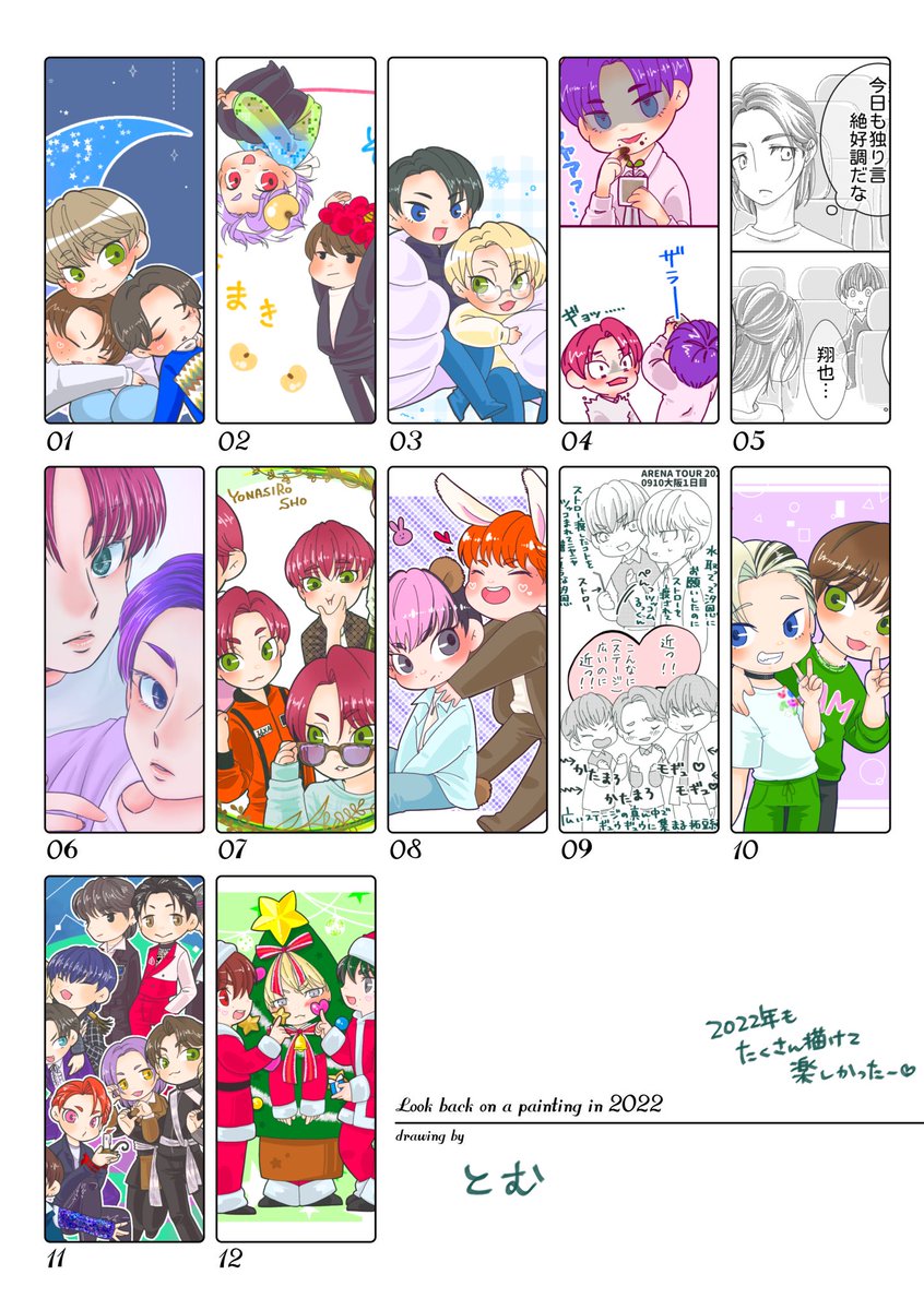 テンプレお借りしました!今年のイラストまとめ❤️ 2022年もじぇおわちゃんいっぱい描けて楽しかった〜🥳💕 2023年もいっぱいじぇおわちゃん達描きたいな❤️ #2022年の絵を振り返る #JO1fanart