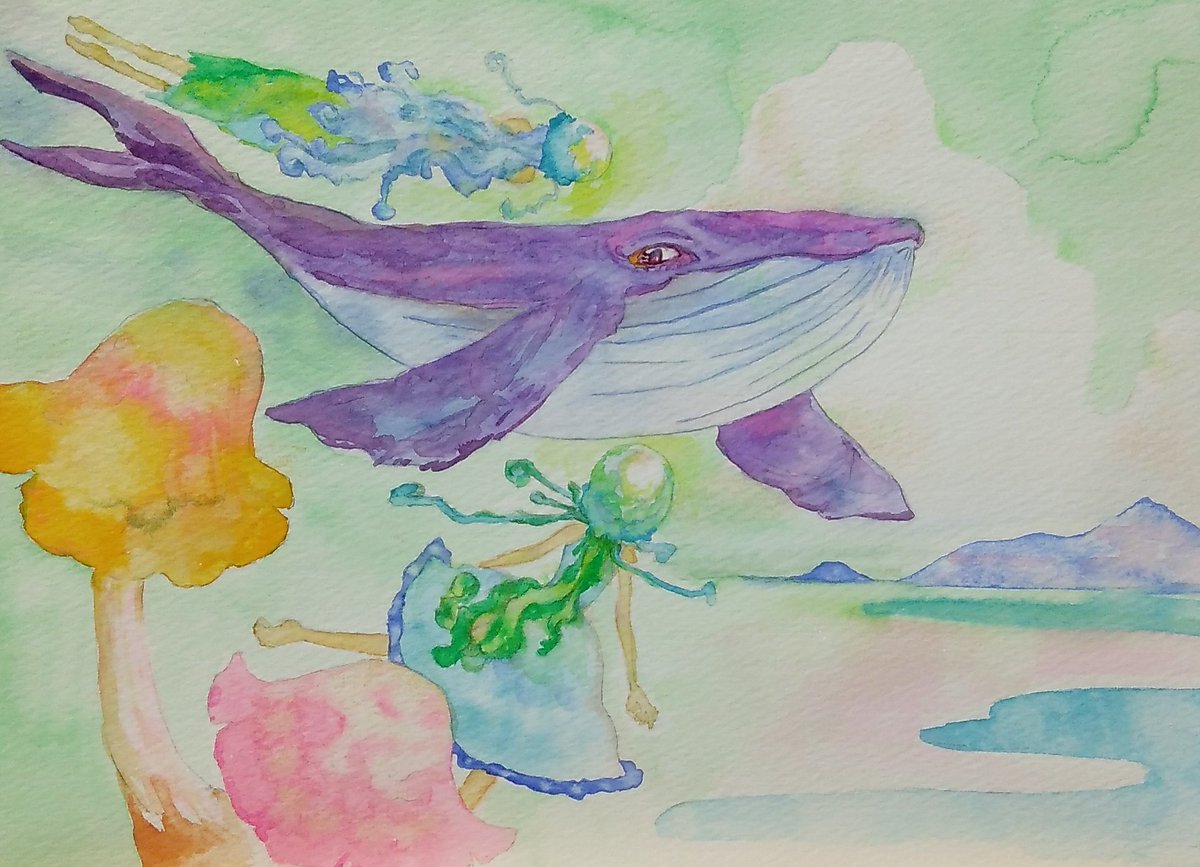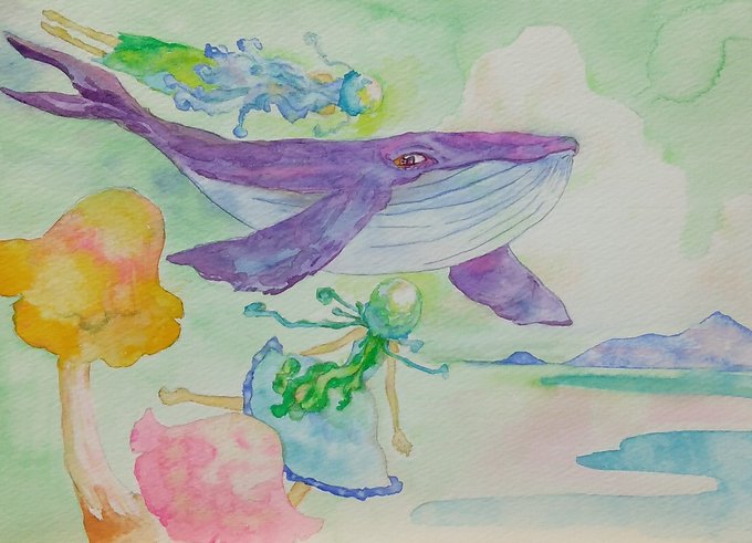 お題:花畑+フライングですが船+帰還、おまけでピエロ 絵の描ける休日が待ち遠しいひと月でした。素敵なハッシュタグをありがとうございます。ご一緒させて頂き光栄でした! #水彩行進曲 #透明水彩 #ファンタジーイラスト