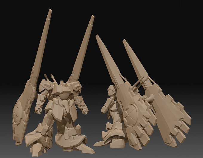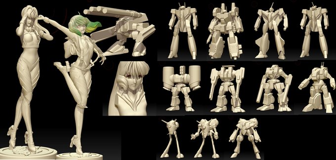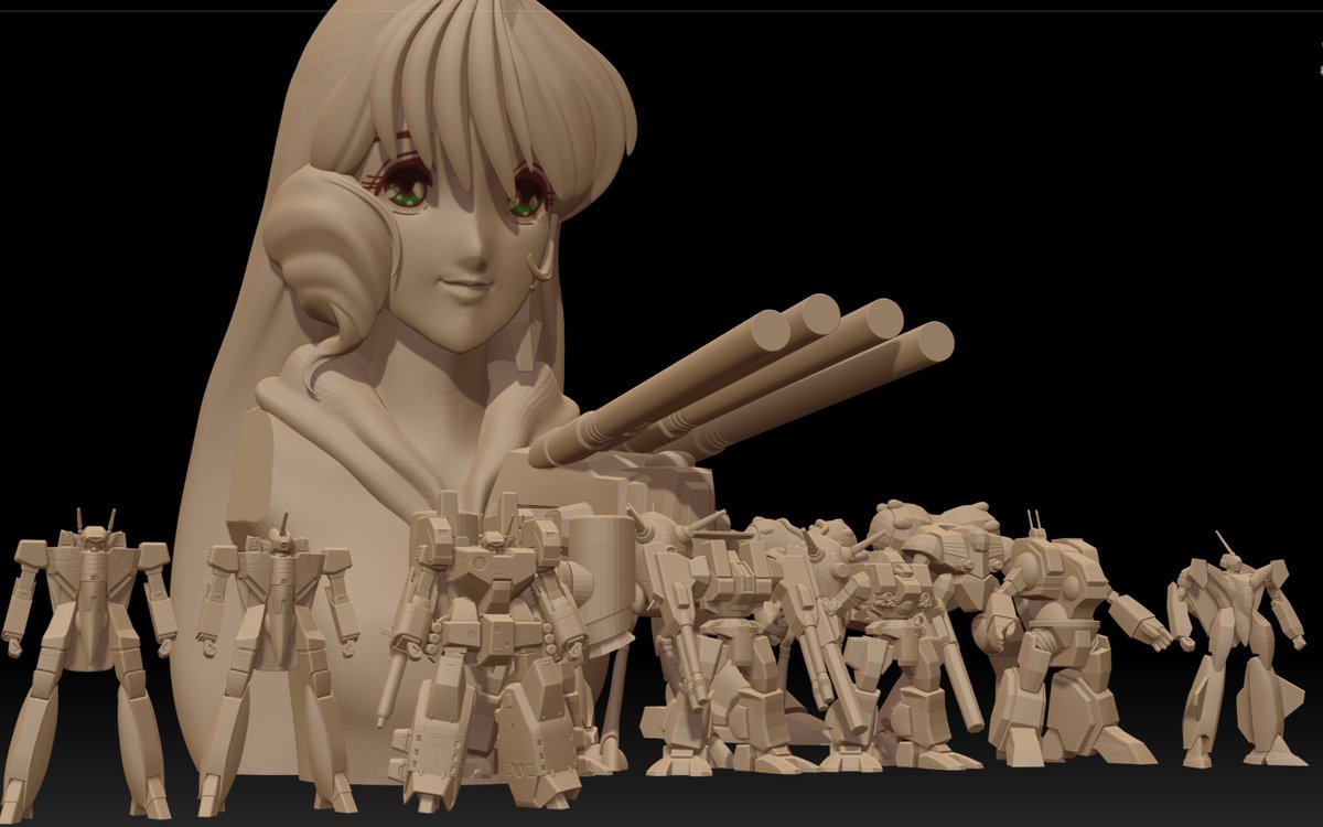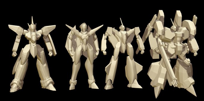 ちょっと数が増えてきたので、マクロス7チームだけまとめてみました。VF-11アーマードは昨晩ライフルと背面のローポリ作業終了しました。さすがアーマードのボリューム( ゚Д゚)複製考えたくない。 #マクロス #マクロス7