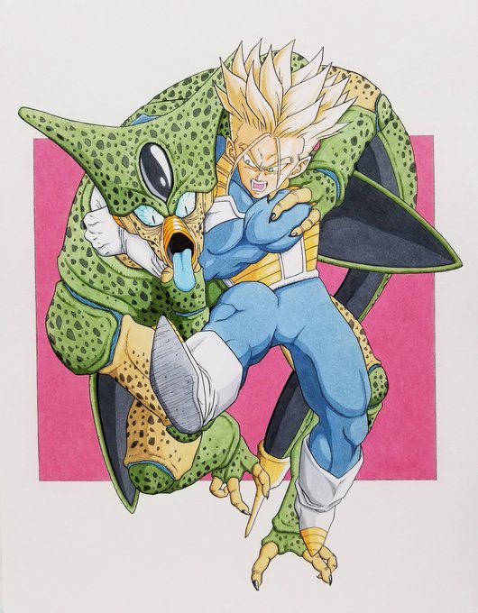 「セル!おまえの計画はオレが阻止する!!」 トランクスvsセル(第1形態)を描きました。 #模写 #アレンジ