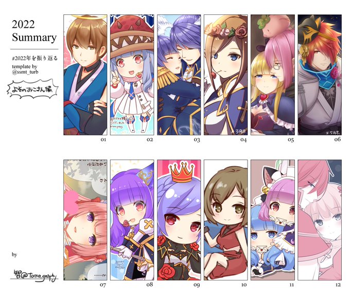 #2022年の絵を振り返る 今年はよそのお子さんを描かせていただく機会が多かったので自キャラ以外縛りで🥰 空いちゃってる月もあるけどだいたい前月の月末ギリギリの日付のものがあるのでこっそり持ってきました… いっぱい描かせていただきありがとうございました! 来年もよろしくお願いします🥰