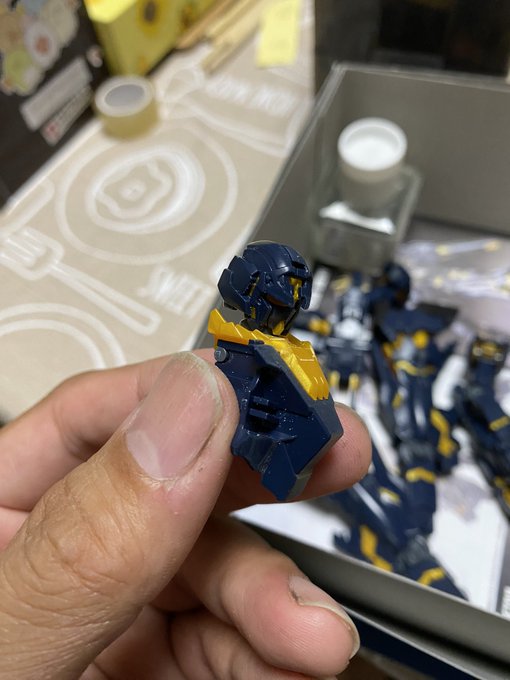 スミ入れの途中で寝落ちてて今さっき起きたので一気に終わらせた_(⌒(_'ω')_ 後はちょいと塗装したら艶消し吹いて終わりかな! #ガンプラの画像貼るとRTされると聞いて #ガンプラ好きと繋がりたい
