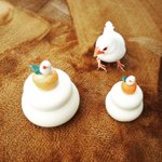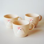 20 196 ハチドリのブローチ試作第二弾と、ピアスかボタンになる文鳥さん。 あとは、リアルな文鳥さんのマグカップと、小さいコップは、焼く前のもの🕊✨🔥 22/05/04 12:30