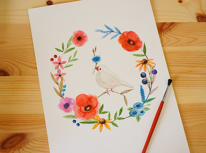 久しぶりに水彩を描いている🕊あと少しで完成‥!