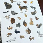 Californiaの陸に住む動物達描きました🐻鳥さんと並べてみました。