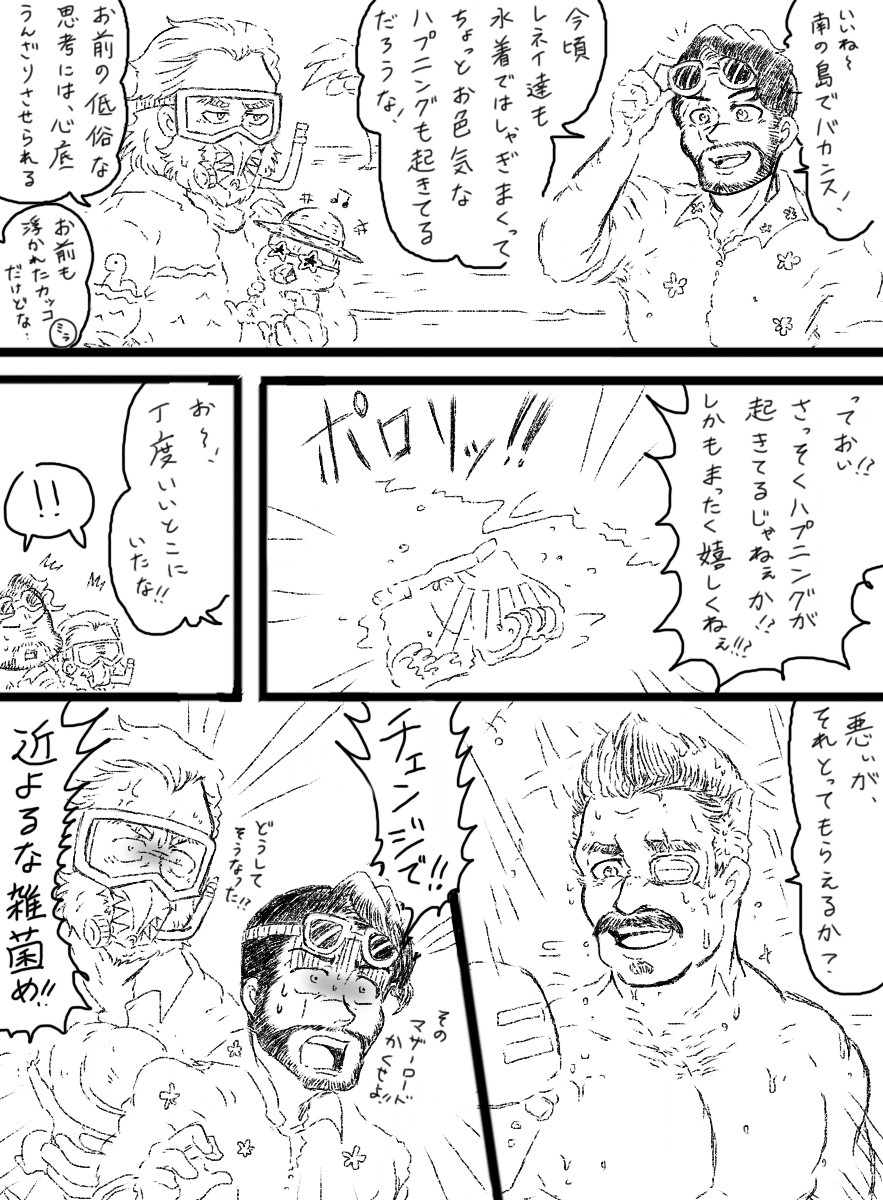 イベントでヒューズおいたんが水着一丁じゃなかったので再掲