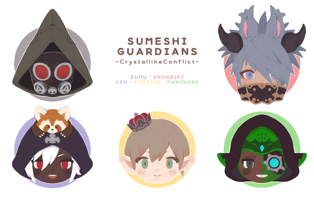 3回分のクリコン大会出場時のメンバー描いたやつ…!ガーディアンズありがとう✨ #FF14イラスト