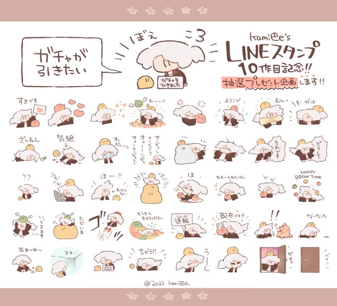 『 ガチャが引きたいぼえこ3 』#LINEスタンプ リリースしました!ありがとうございます✨ ➡ store.line.me/stickershop/pr… ps: スタンプ10作目記念 🎉 フォロワーさん(新規さん◎)対象にスタンプを抽選でプレゼント🎁 2~3月以内に詳細再告知します! #LINEスタンプ宣伝部 #イラスト #Original #創作