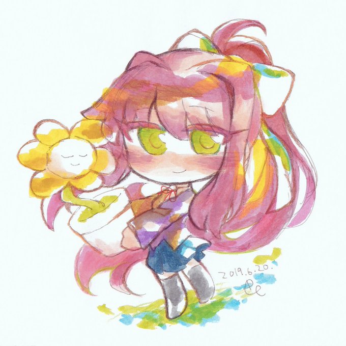 【Eng】 Using ” Sick ” 英語勉強note( note.com/tomoe0tomoe/n/… )のサムネ用に昔描いたモニカ(とフラウィー)を引っ張り出した。懐かしい絵 I love her & Thank you zach #DDLC #イラスト #illustration
