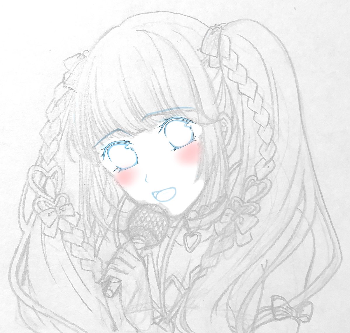 #絵描きさんと繋がりたい #イラスト依頼 #アイコン 今描いてるイラストのラフからベース塗りまで。二刀流やってくなら、アナログラフは続けてもええな、うん。 マイクなんて初めて描いたわ…| ε:)_🎤