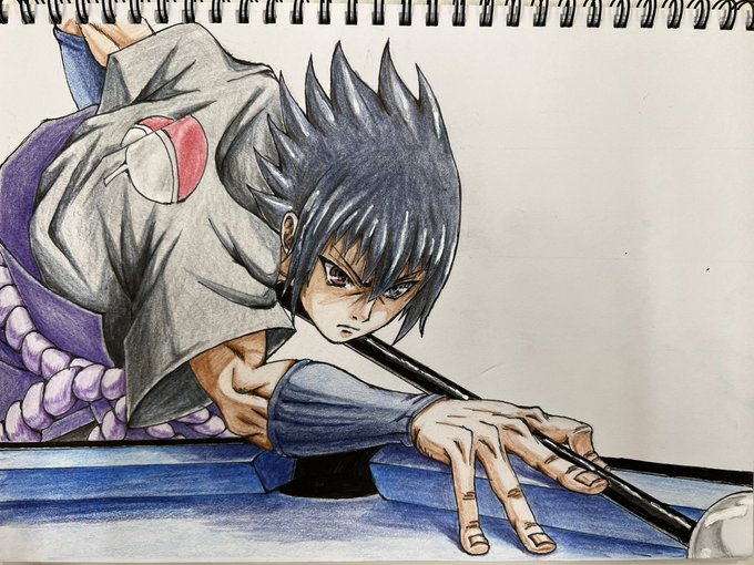 サスケ×ビリヤード!!サスケとビリヤードしたら負けそうー!写輪眼は無敵!笑 #ナルト #サスケ #イラスト練習中 #イラスト #イラスト好きな人と繋がりたい #お絵描き #お絵描き好きな人と繋がりたい #二次創作 #ビリヤード #アニメ好きな人と繋がりたい