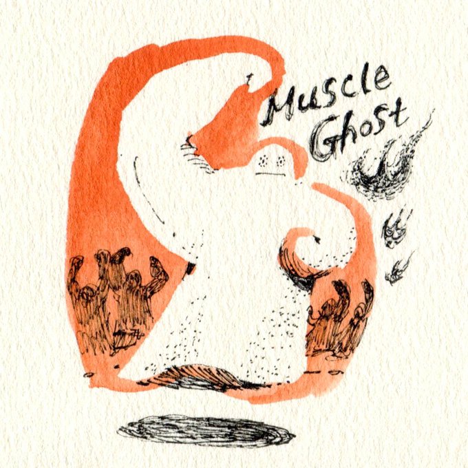 #あしたのために (その9) 『おばけ03』 筋肉おばけ。 次のアニメーションにしようかな。二足歩行の煩わしさがないのはいい。 #illustration #イラストレーション #おばけ #ghost #水彩画 #ペン画