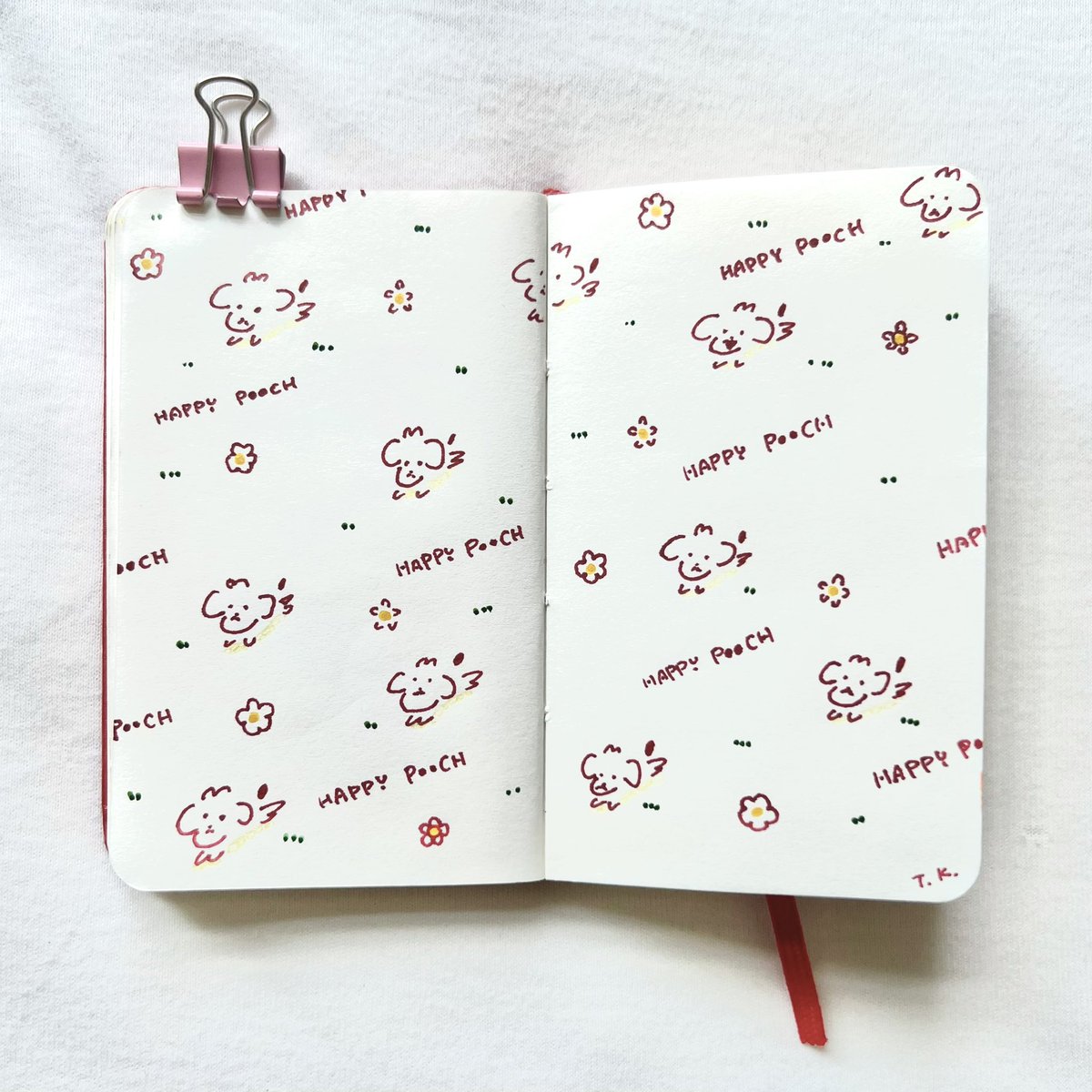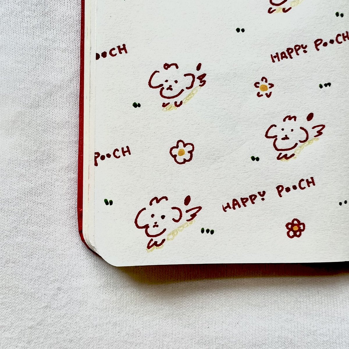 happy pooch🐕 PEN, COLOR PENCIL,MOLESKINE 128mm×105mm 2022 #illustration #イラスト #テキスタイル #textile #painting #moleskine #edding151f #moleskinart #ペン画 #ペン画アート