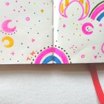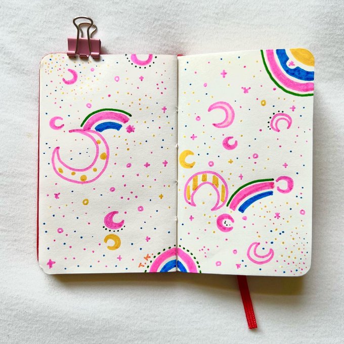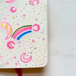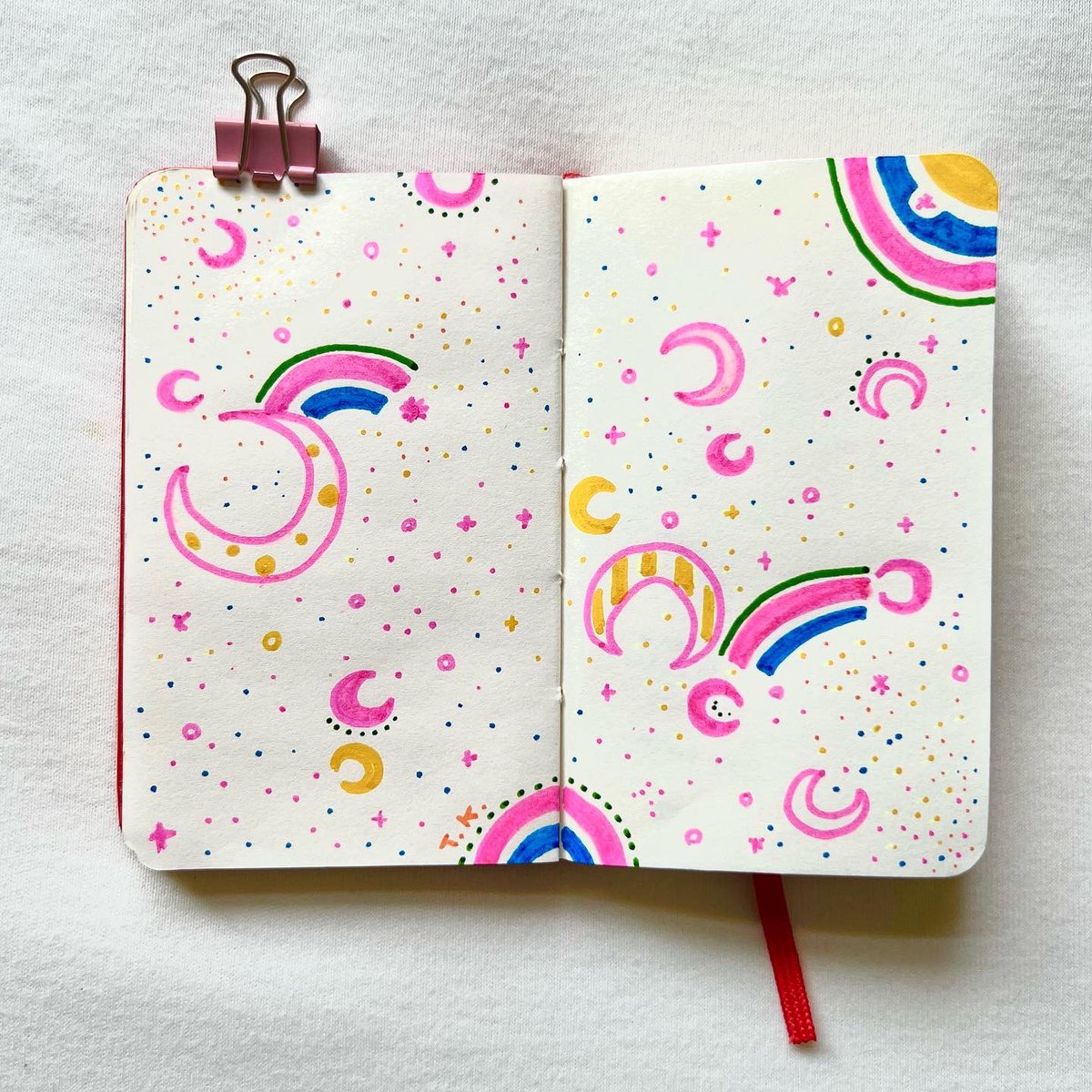 rainbow moon in stars PEN, MOLESKINE 128mm×105mm 2022 #illustration #イラスト #テキスタイル #textile #painting #moleskine #moleskinart #ペン画 #ペン画アート #モレスキン