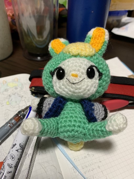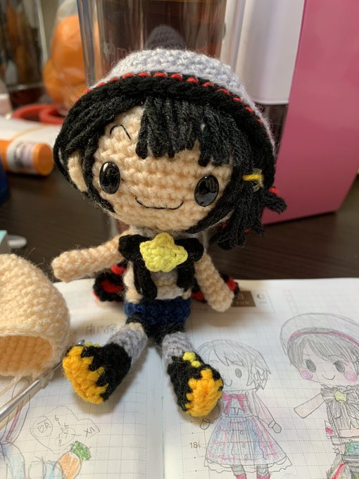 誕生日の35Pぬい欲しい再販求む と思って作りました。編み図も一応メモはしてあるので、同じの作って見たいよって人いればご一報下さい。 #miko_Art #あみぐるみが編みたくなる糸
