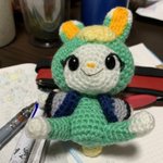遅ればせながらDQMJ2観つつ、ぺこちゃんの新衣装ver.作りました。寒くなったてきたのでジャケットもそのうち。 #ぺこらーと #あみぐるみ