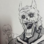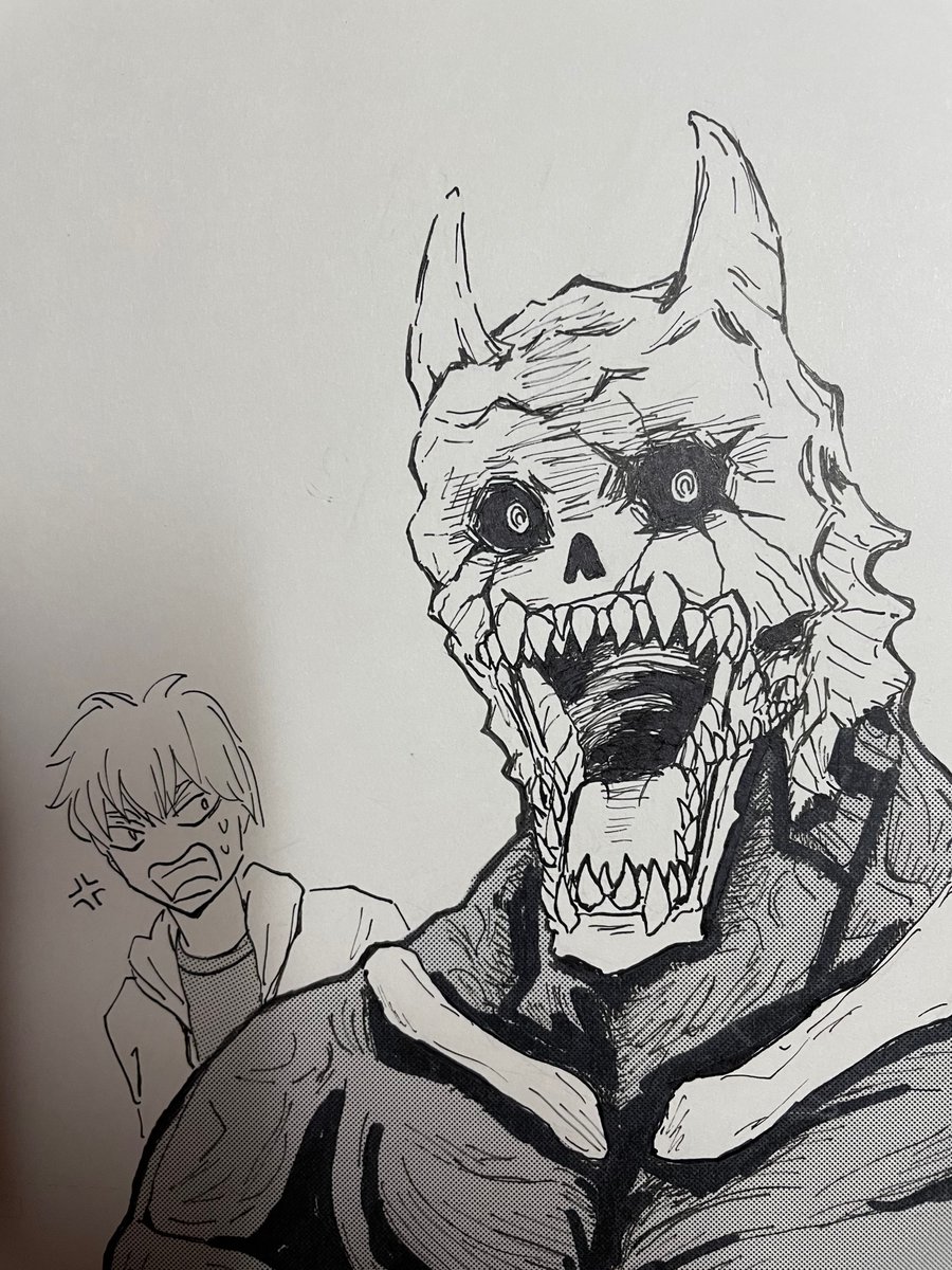 vivyとアンチくん(ナイト)と怪獣8号。サークルに郵送予定原稿 #アナログ絵