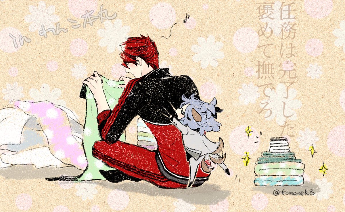 #典包ドロライ月間企画 お題、『歌』『花』『撫でる』 最初のドロライにワンコミツヨでお邪魔します。 鼻歌まじりで畳んでいる洗濯物はお花の柔軟剤でフローラルフレグランス。「自分の洗濯物は己で片付けろ」そう言われ、一生懸命おたたみした子犬はご褒美狙い⋯