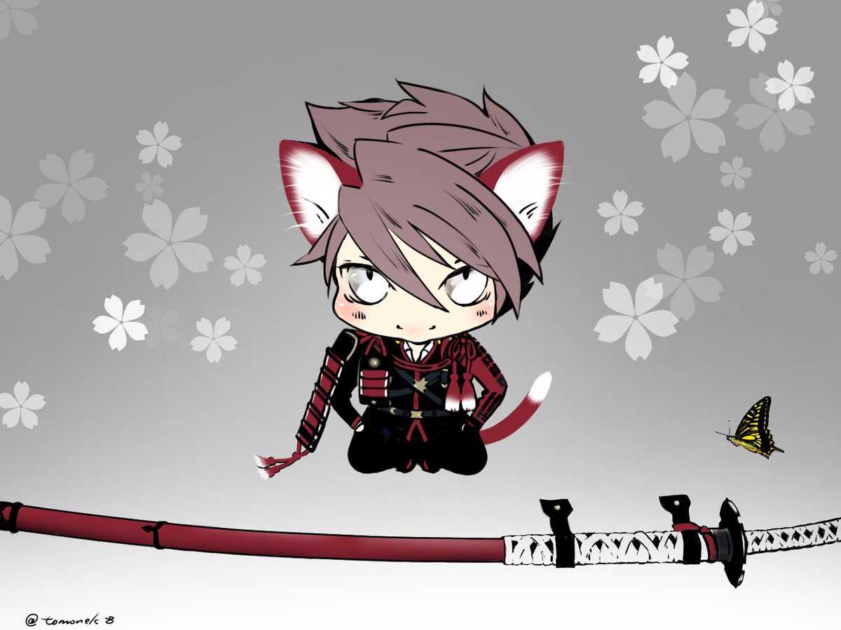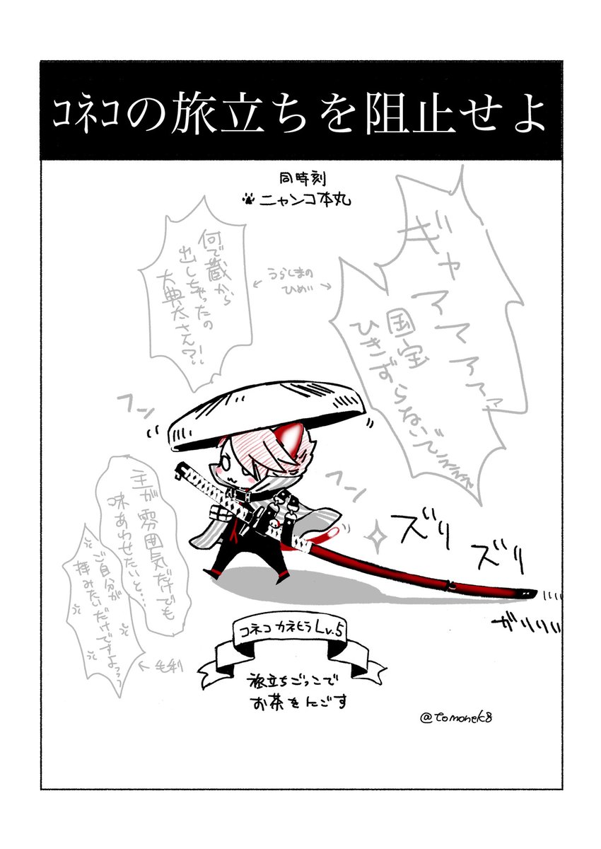 #典包ドロライ月間企画 お題『春』『見つめ合う』『寄り添う』 全て微妙⋯⋯in ニャンコ本丸 八重桜が散っている本丸庭園(春のつもり) 雑巾掛けは気をつけよう!(寄り添ったつもり) 獣と無闇に目を合わせてはいけない(見つめ合ったつもり)