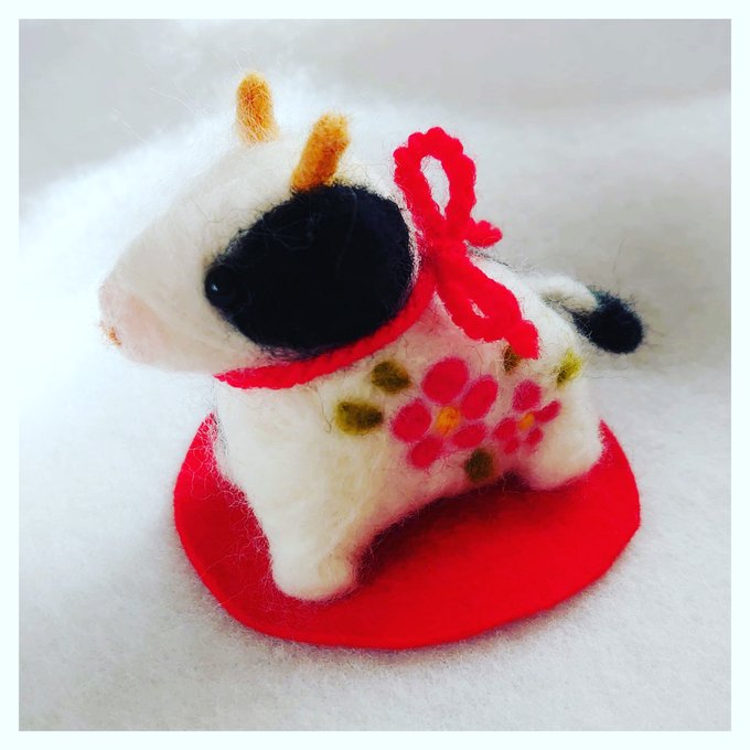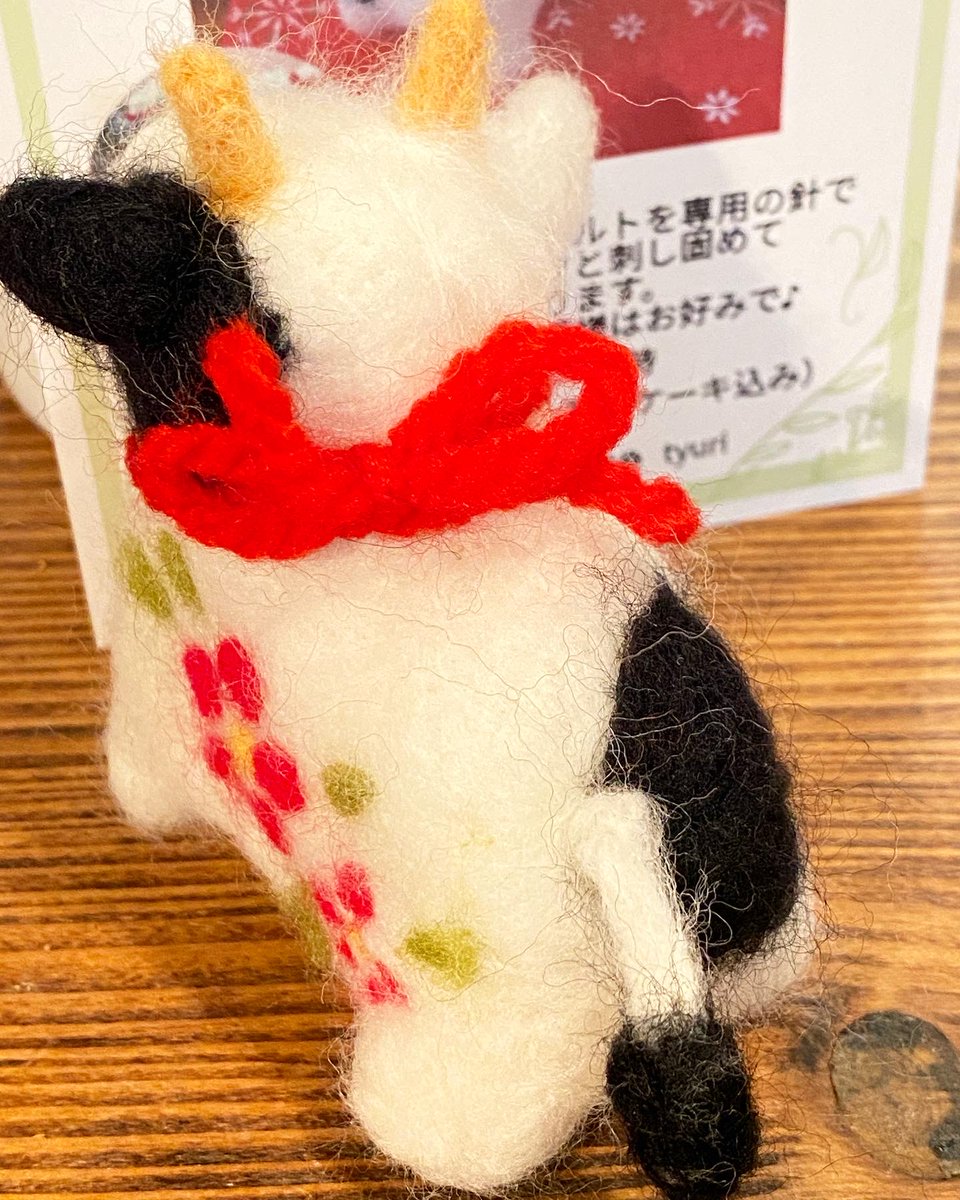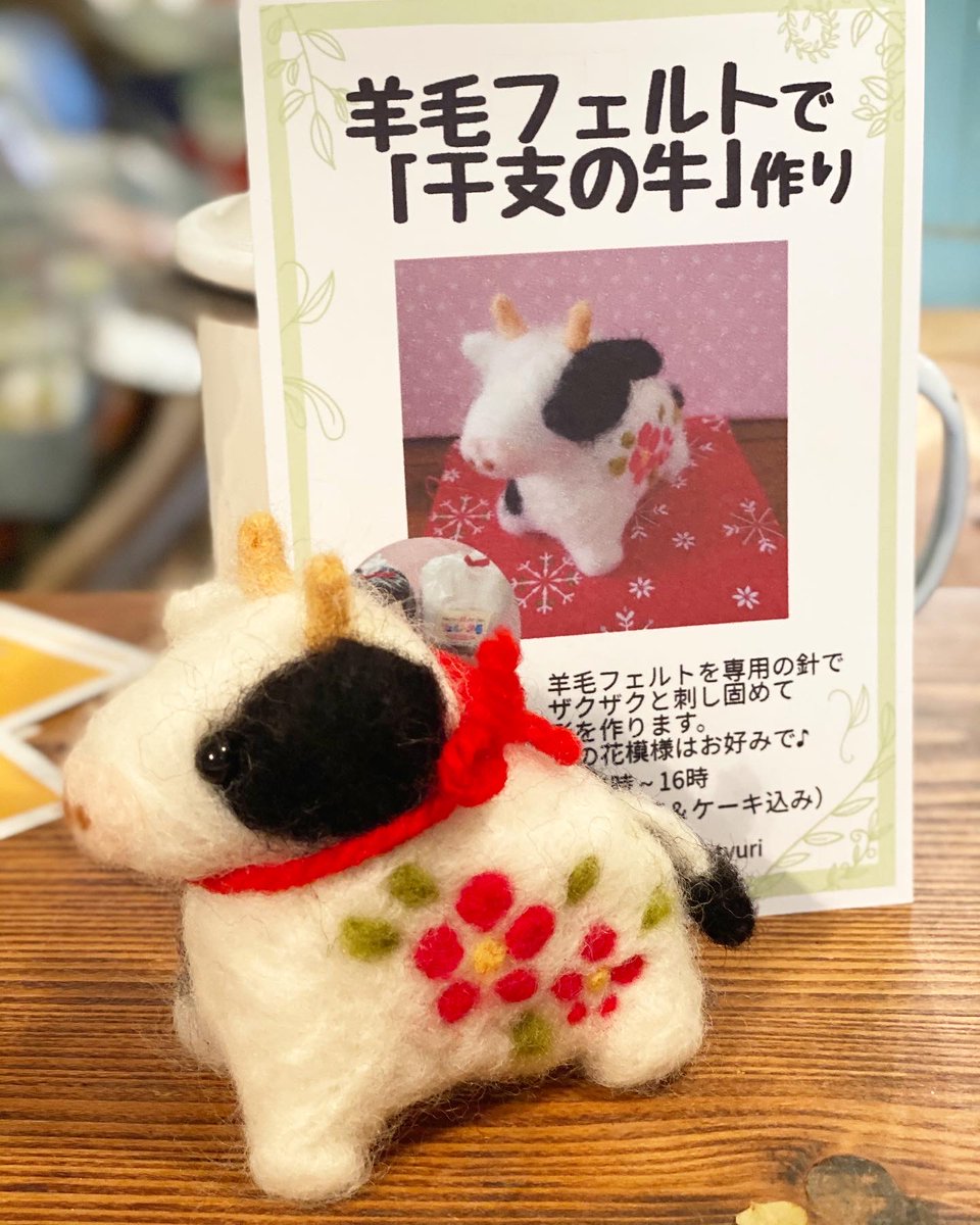 見本が届きました😊 羊毛フェルトで「干支の牛」作り 日時:11月27日(金)14:00~16:00 場所:Le Ciel deux @leciel_deux 費用:3,000円(ケーキとハーブティー付き) 講師:tyuriさん @tyuripopo お花は好きな柄にできます。 あとお一人だけ募集します❣️ #羊毛フェルト #lecielカルチャー倶楽部