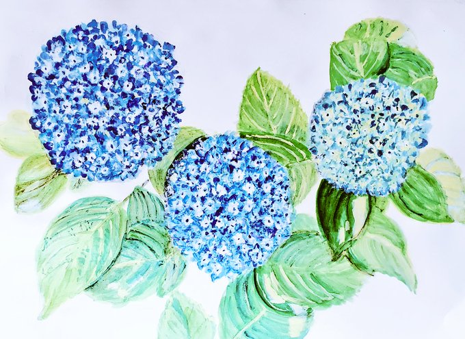 紫陽花は苦手です。 練習したくて描いてみたけど紫陽花もどきが出来上がりました😂 実物とは違う代物になっちゃったけど嫌いでは無いんだよな〜 これから、もっと練習する! #新作 #アクリル画