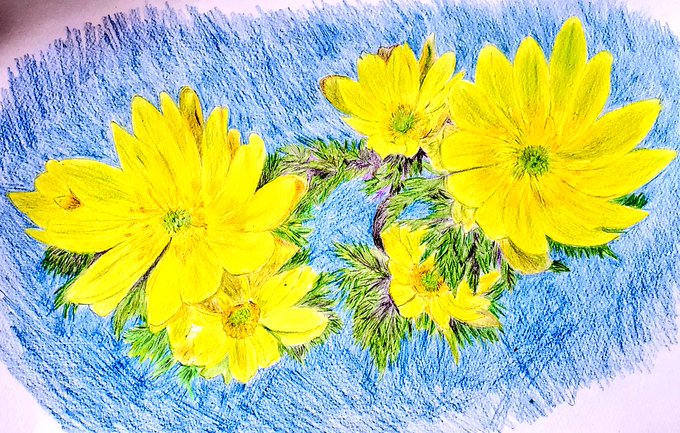 #自分を振り返る 福寿草 #色鉛筆画
