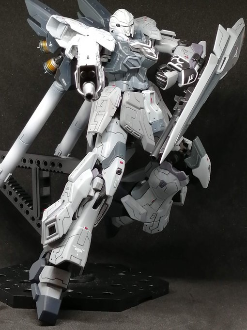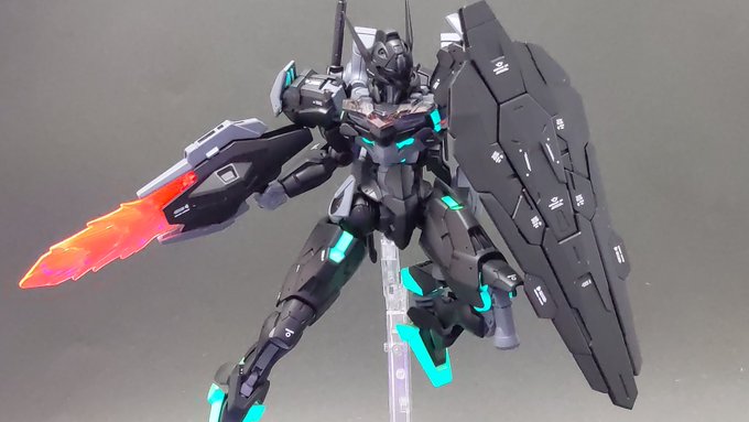 闇堕ちダリルバルデ完成しました(´ε` ) グエルが闇堕ちしていたらこんな感じの機体に乗っているんでは?の設定で制作しました😍 色んな部分がUVライトで光ります😋 続く↓ #ガンプラ #ガンプラの画像貼るとRTされると聞いて