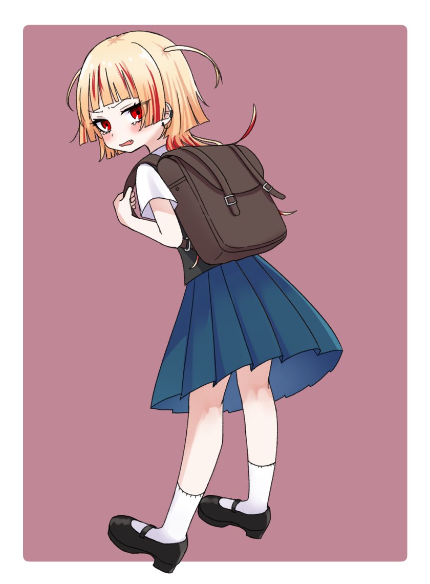 こちらは制服の美月姫ちゃん。ランドセルを背負わせたい気持ちも多々あったのですが、カーラちゃんはお金持ちのお嬢様学校に通ってそう……と思ったので、そんなイメージで描きました。完全に妄想です。