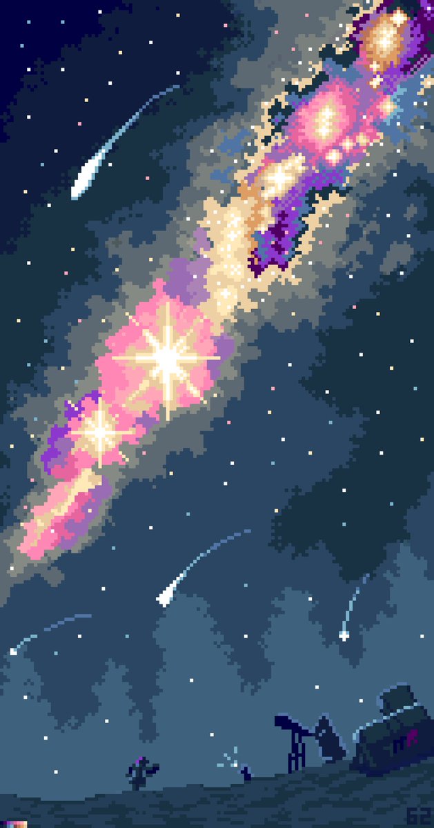 Distant Wish Finding a fragment of wish and hope, now come with the team together observing for the unknown answer on this below celestial scenic. #pixelart #illustration #T_MR2 #ArtistOnTwitter #indiegame #Retro #ドット絵 #イラスト #Landscapes