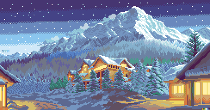 Nocturnal Sun In this winter, the place with less density of population such a highland a rare phenomenon happens. That mountain now glowing white while it's 2 AM here, like seeing heaven descended. #T_MR2 #illustration #pixelart #イラスト #ドット絵 #ArtistOnTwitter #landscape