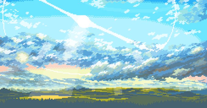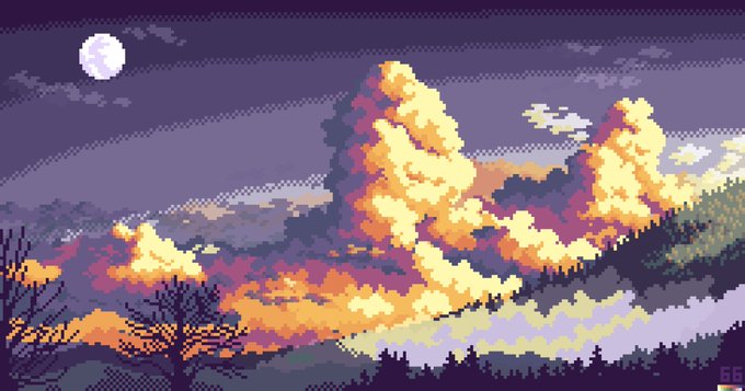 Dawn Cumulonimbus (Clean) High in the near of peak mountain, the sun begun to arise and shjne giving color to the world. #pixelart #illustration #T_MR2 #ArtistOnTwitter #イラスト #ドット絵 #landscape