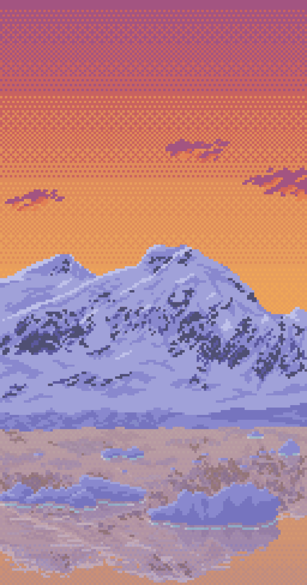 Arctic in Dusk How far the journey for hunting landscape is? Even through the coldest region in north just for see the dusk coming. Well, it's still worth journey it is? #pixelart #illustration #ドット絵 #イラスト #ArtistOnTwitter #landscape #Retro
