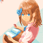 I'm just reading (KM) "Is there another thing again? Going out with you? Sure." So, any request for fan art? Let me try it with this style. Commission!? Big YESSS! #pixelart #illustration #T_MR2 #ArtistOnTwitter #イラスト #ドット絵 #かわいい #animegirl