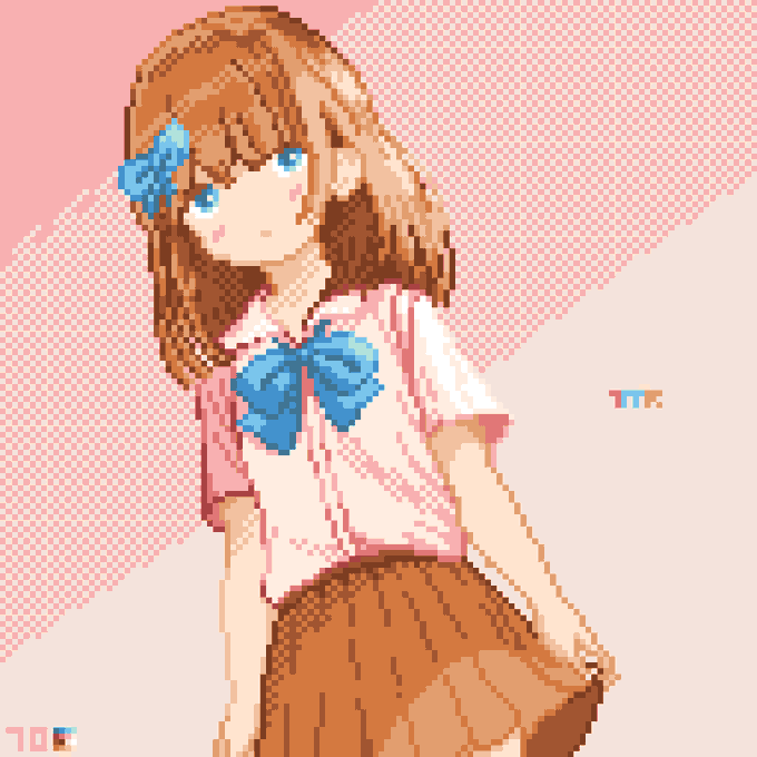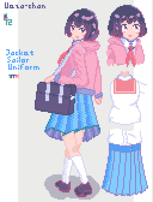 Ueza-chan: School Uniform Spring will come and school will start again. This? My new uniform, how is it? I don't know if it will suit for me or no but I'll keep my best! #イラスト #ドット絵 #illustration #pixelart #UWF #animegirl #ArtistOnTwitter #artidn #characterdesign