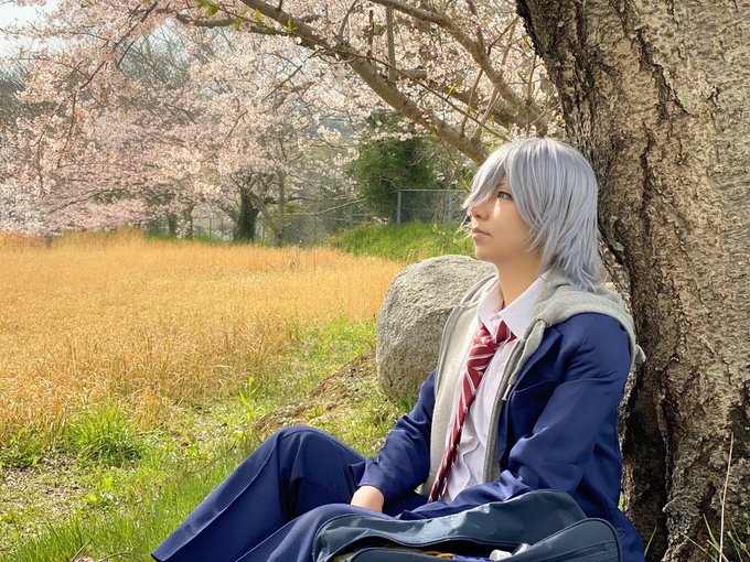 【Cosplay】 アイナナ/四葉環 桜の花が俺の誕生日お祝いしてくれてるみたいじゃん。最高の景色だね! くらて学園イベントにて。 photo:@Mirin_voice #巴のコスphoto