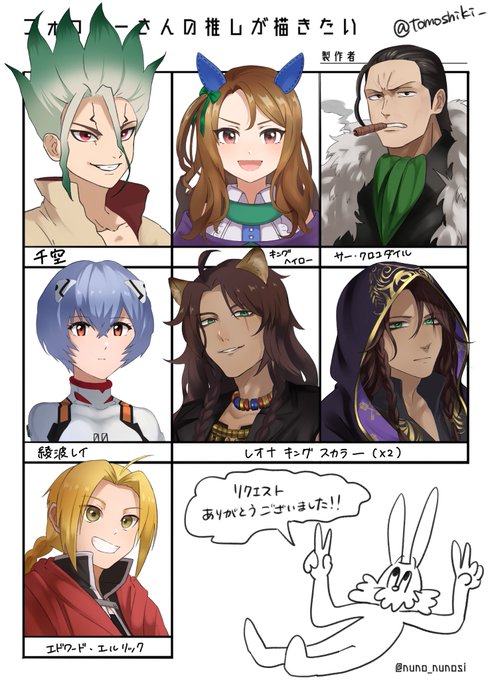 めちゃくちゃ時間かかっちゃったけど完成しました!! たくさんリク来たので人と人外で分けたよ! #フォロワーさんの推しが描きたい
