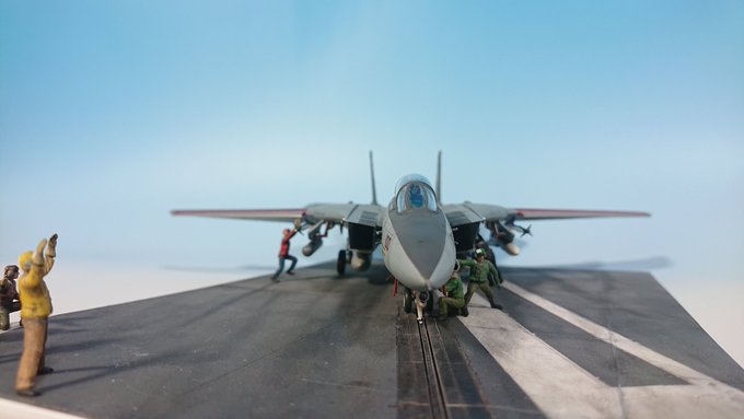 #今月作ったプラモ晒そうぜ フジミ 1/72 F-14A VF-154 Black Knights NF100 フジミ 1/72 フライトデッキクルー でっち上げフライトデッキ 3個と言ってよいのかな!?