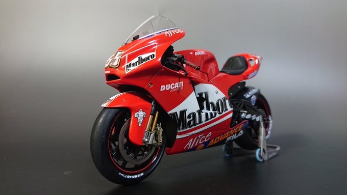 #今月作ったプラモ晒そうぜ タミヤ 1/12 ドゥカティ デスモセディッチ 専用○ボロデカールが売り切れで他メーカー用別年式デカールを使用、他はキットストレートです。 クリア層がアチコチ割れてモチベダウンし修正もせずに完成としてます、再挑戦したいですね!