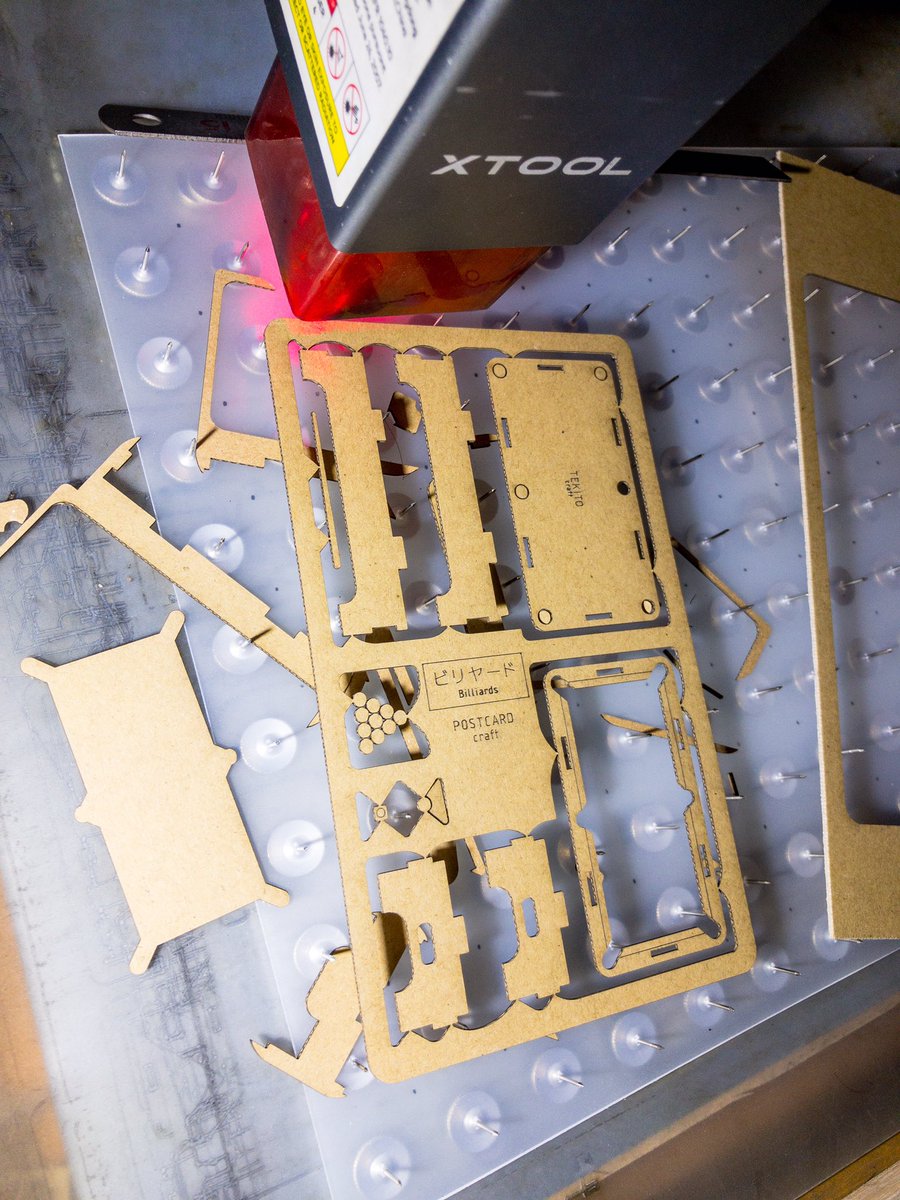 ハカセ!画鋲によるレーザー加工台実験は成功です!