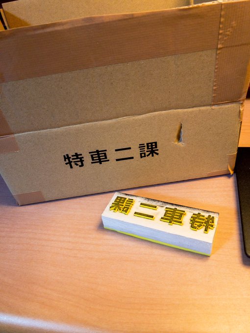 47 230 印字用のインクはシャチハタのタートという油性顔料を使っています。 非常に濃く出るのでいい感じです。 三枚目の画像は普通のゴムハンコでダンボールに押したものですが波打ってるので失敗します。 右は通常のスタンプ台ですが薄くなりますね(´ω`) 23/03/17 12:05