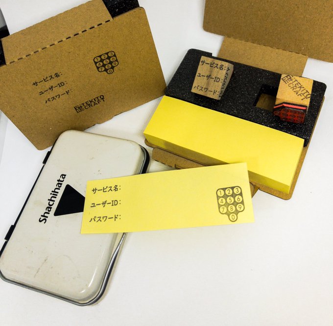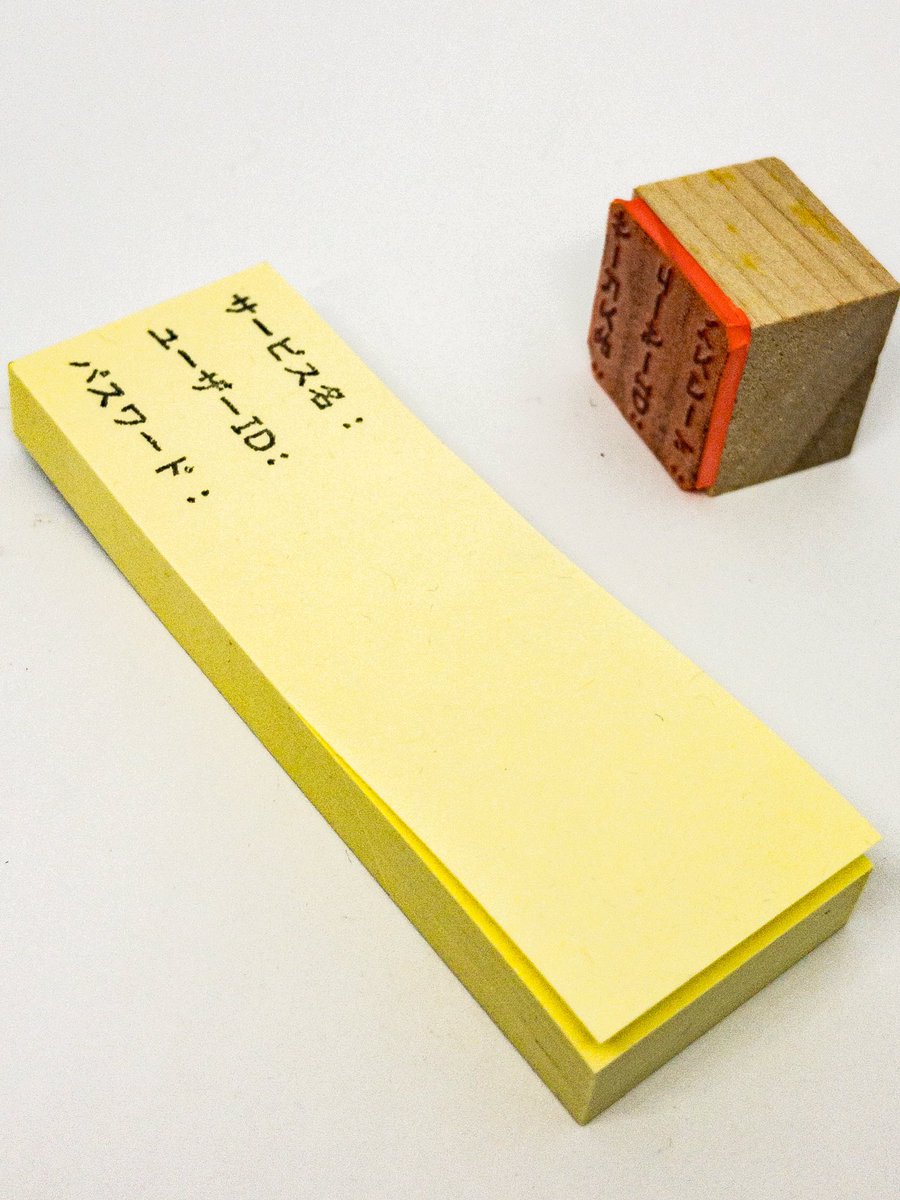 パスワード管理ハンコセット完成! なんと付箋を格納できるケース付きですぐモニターなど目につく所に貼っておく事が可能に。 さあ目立つところに貼って忘却防止だ!٩( ᐛ )وセキュリティトハ?