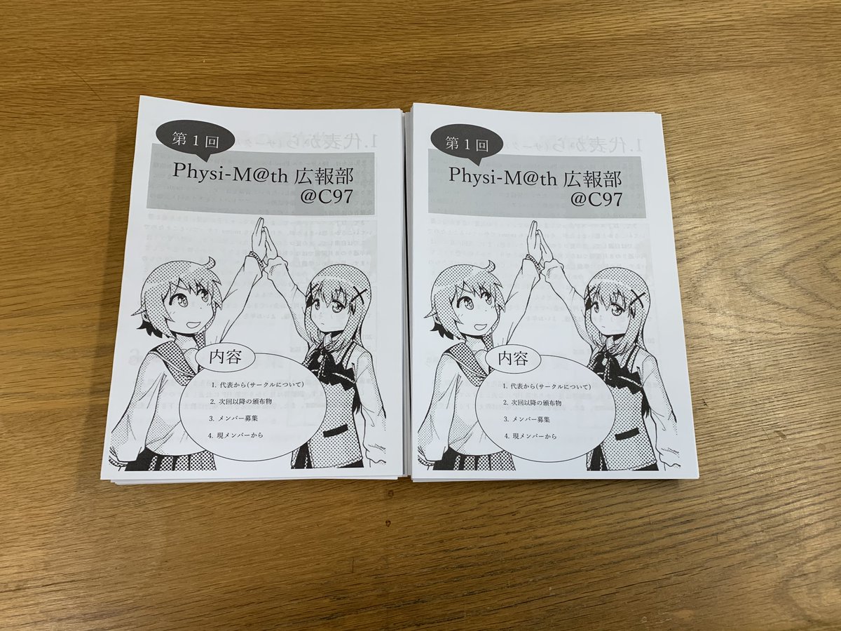 【冬コミ頒布物紹介】 Physi-M@th広報部(無料) 当サークルの紹介やメンバーからの一言、さらにはゆゆ式の4コマが載っているとの噂が…? 広報誌のみの頒布も大歓迎です! お気軽にお越し下さい! 【WebカタログURL】webcatalog.circle.ms/Perma/Circle/1… #C97 #冬コミ #C97WebCatalog #情報 #評論 #情報評論