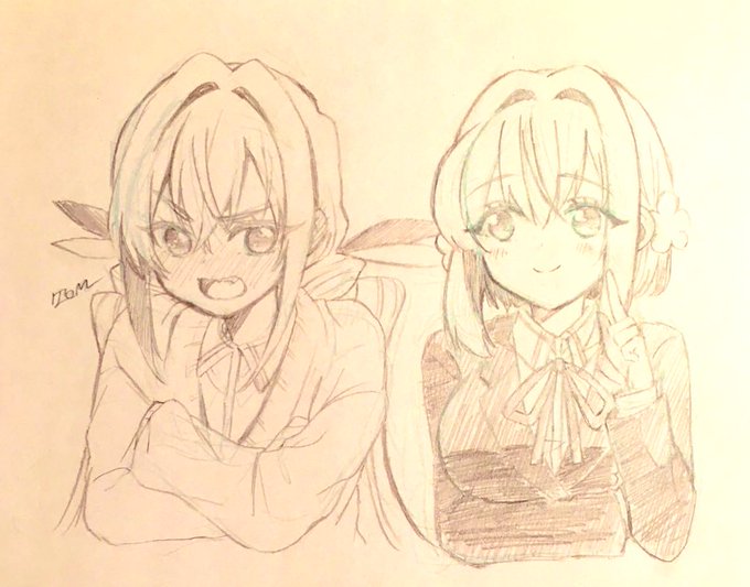 在りし日の純加さんと寧々さんです(*´︶`*) 10巻の描き下ろしがすごく好きで、寧々さんの表情はそこからニュアンスを得ています🙏✨✨ 初めてペアで掲載するイラストがこの2人とは思っておりませんでしたが描けて良かったです🥰 #私の百合はお仕事です! #わたゆり #YuriIsMyJob #リーベ女学園記録係
