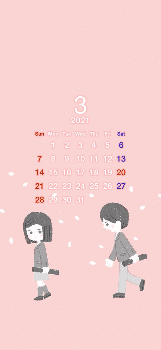 3月の待ち受けカレンダーを作ったので、よかったらご利用ください🕊 iPhone X, 11, 12, 13(Pro)に最適化しています。2枚めは使用サンプルになります。 #1日1絵 #sketches #毎月一日にカレンダーを描こう
