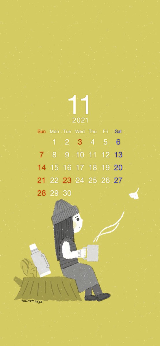 11月の待ち受けカレンダーを作りました。よかったらご利用くださいませー🍂 iPhone X, 11, 12, 13(Pro)に最適化しています。2枚めは使用サンプルになります。 #1日1絵 #sketches #毎月一日にカレンダーを描こう