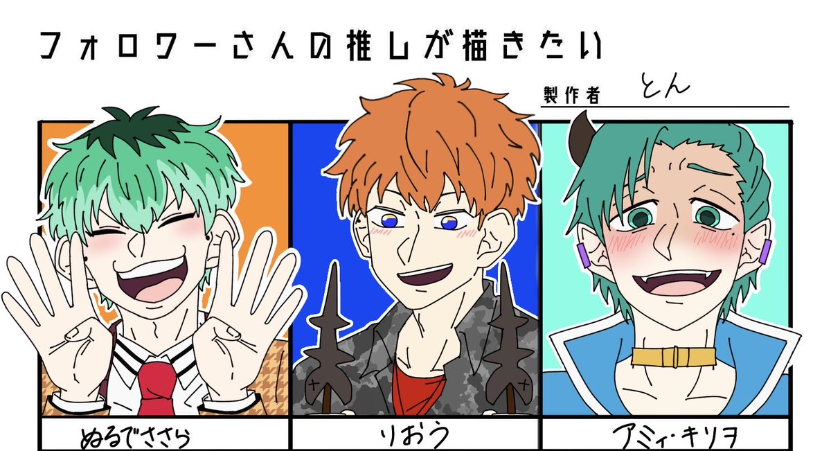 描かせていただきました〜!!! リプしてくださった御三方ありがとうございました!🙇 #フォロワーさんの推しが描きたい